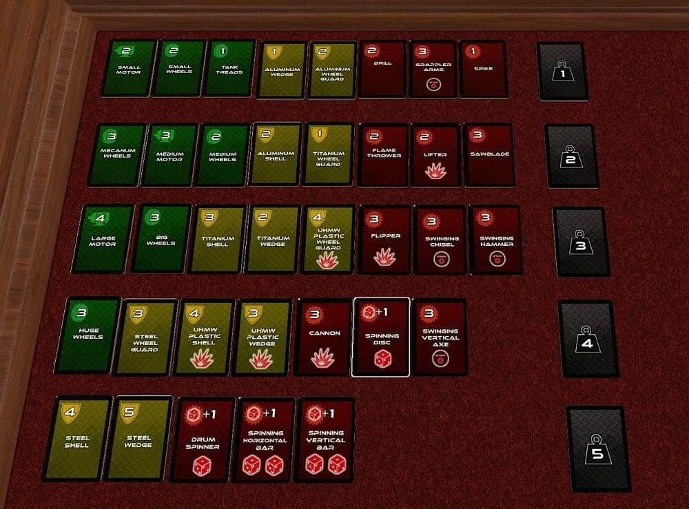 You read it here it first - introducing Bot Battle to the world! It's only been playtested a handful of times, but it's already one of my new favorites. Drafting, deck construction and deck DESTRUCTION in a fast-paced, 15-20 minute package that I've heard described as 'rock-paper-scissors meets War'. If you've enjoyed any of the bot battling TV shows, this aims to replicate the maneuvering and outguessing of the sport while abstracting away the finer details. Over a dozen weapons, a dozen types of armor, and plenty of mobility options to keep your opponent guessing what you'll play next.