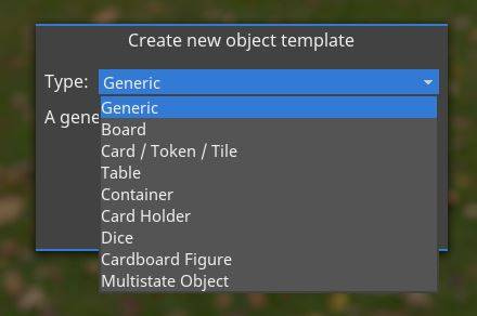 Go ahead, make a table - eight traditional models are built in. I didn't get a screenshot of it, but meeples are built-in to the program (take that, Tabletop Simulator!).