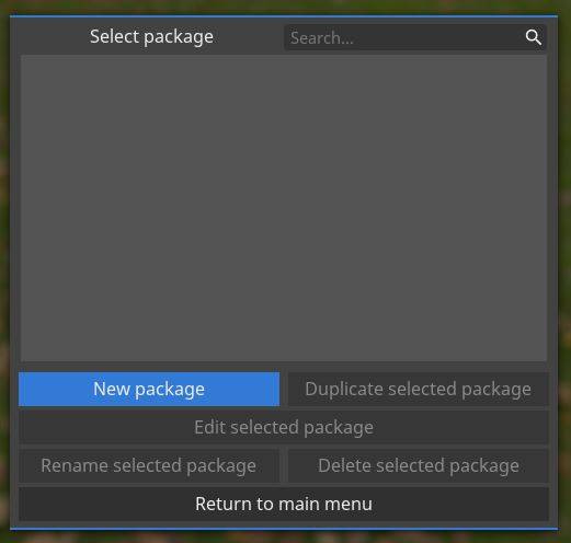 Here's where you'll select a 'package' (e.g. your game) that's already assembled. The package can have any number of components, naturally.