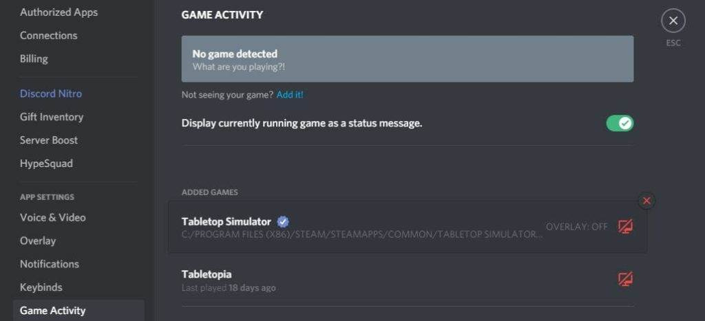 While you're here, another place to check is under App Settings called Game Activity. Turn it off and on on a program level, if that's more your thing.